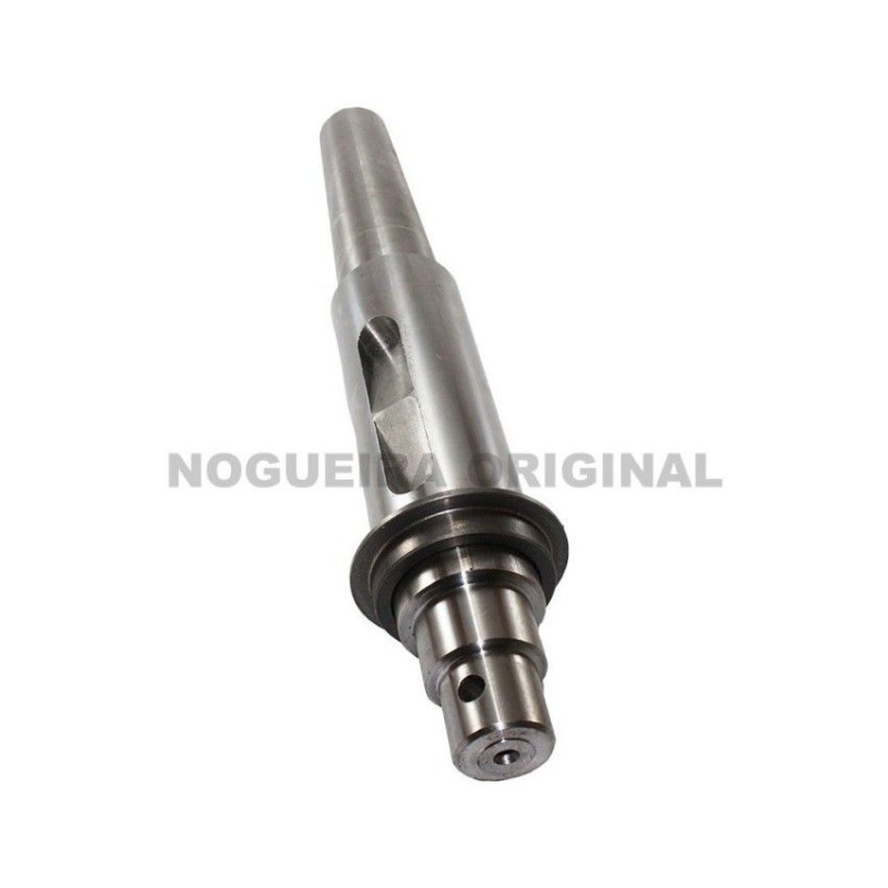 Eixo original Nogueira para rotor das forrageiras em aço carbono, medindo 330mm de comprimento.
